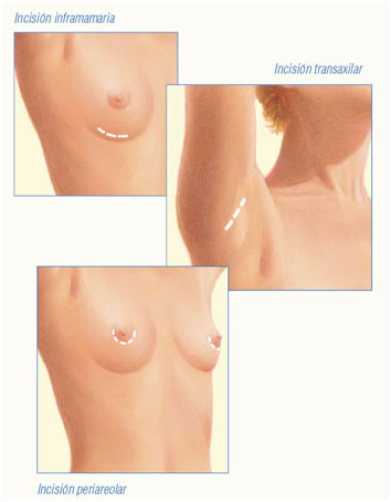 The incision varies with: the type of implant, the desired augmentation, the anatomical characteristics of the individual and the preference of the surgeon and the patient.