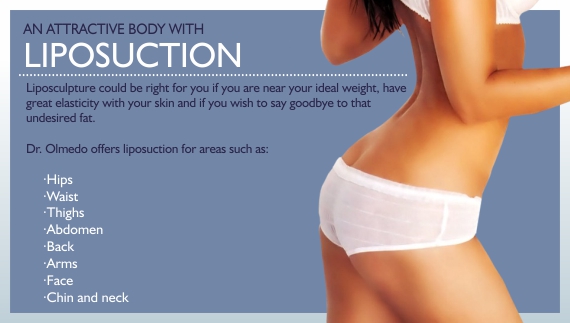 People who choose to get liposuction can enjoy of a beautiful and firm body after the procedure. Take a look at Dr. Olmedo’s artistic ability when you see the photos of real patients who chose to get liposuction. Even better, make an appointment with Dr. Olmedo for a personal evaluation.